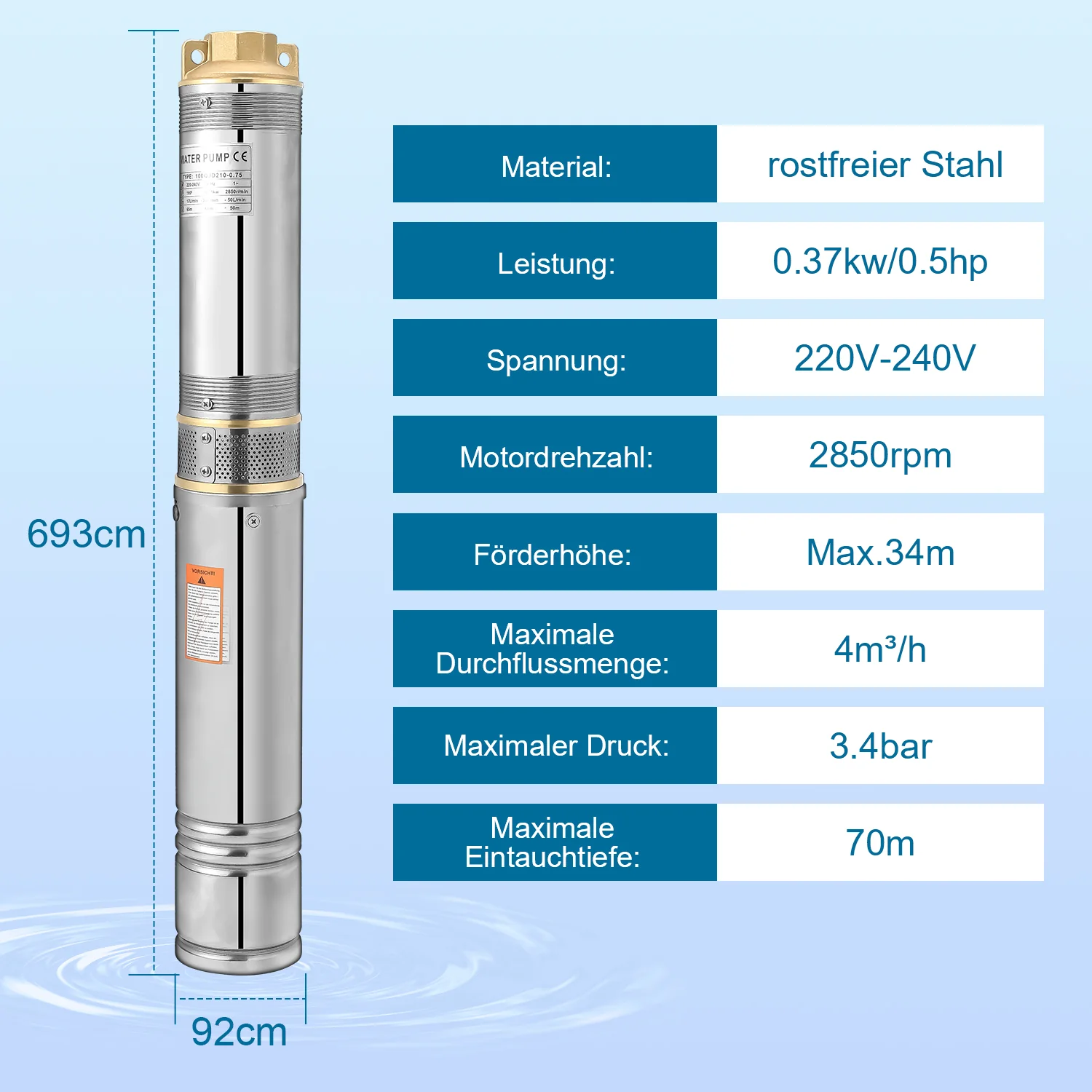 【Hohe Festigkeit, keine Gerusche】Geeignet für Tiefbrunnenpumpen, die maximale Eintauchtiefe betrgt 70 m, das Wasser kann bis zu einer Hhe von 34m/67m/81m transportiert werden und der Transport ist leise und geruschlos. Der Einsatz ist energiesparend und umweltfreundlich.