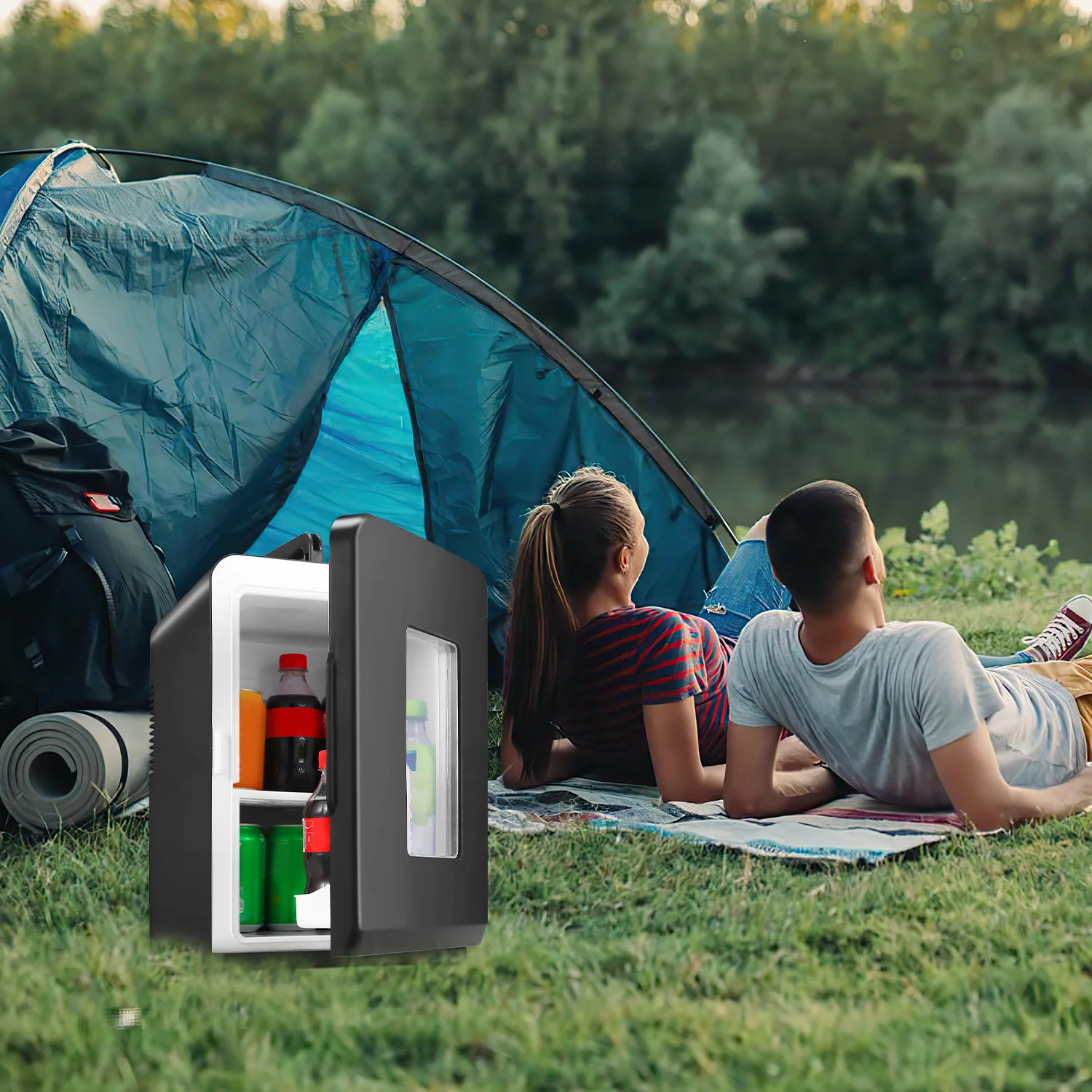 【15L Kompakter Mini Kühlschrank】Der 15 Liter Minikühlschrank kann problemlos 30 Dosen mit 330-ml-Getrnken aufbewahren. Diese Kapazitt eignet sich für Hause, Büro auch für Aufbewahrung von Kosmetika und Hautpflegeprodukten. Es gibt Griff am Kühlschrank, die als Autokühlschrank leicht angehoben werden knnen, um Lebensmittel beim Picknick oder Camping aufzubewahren.