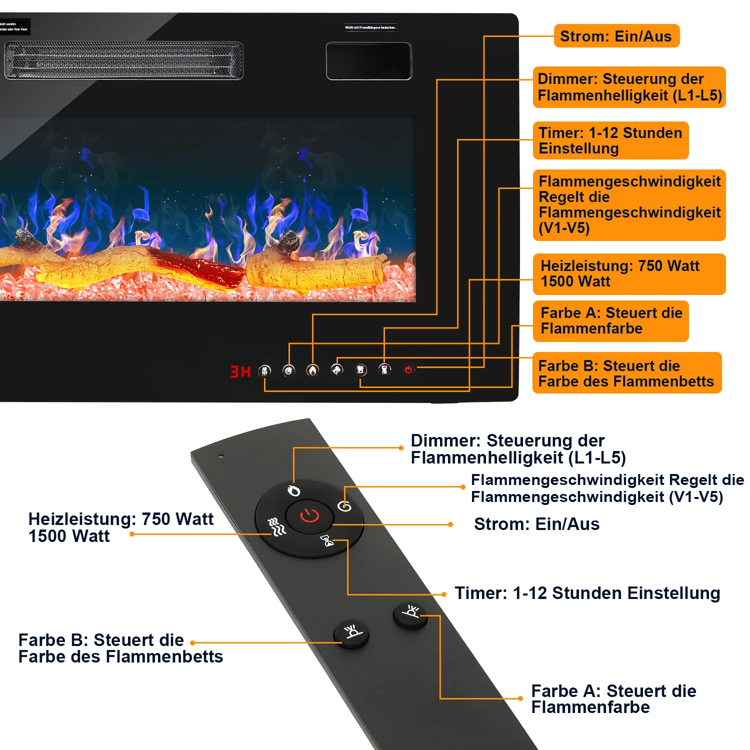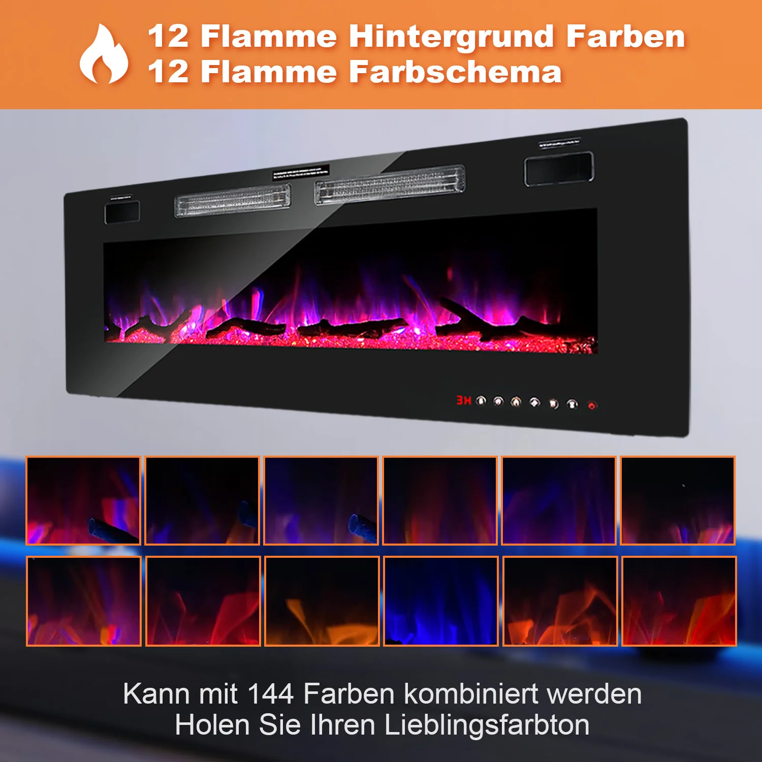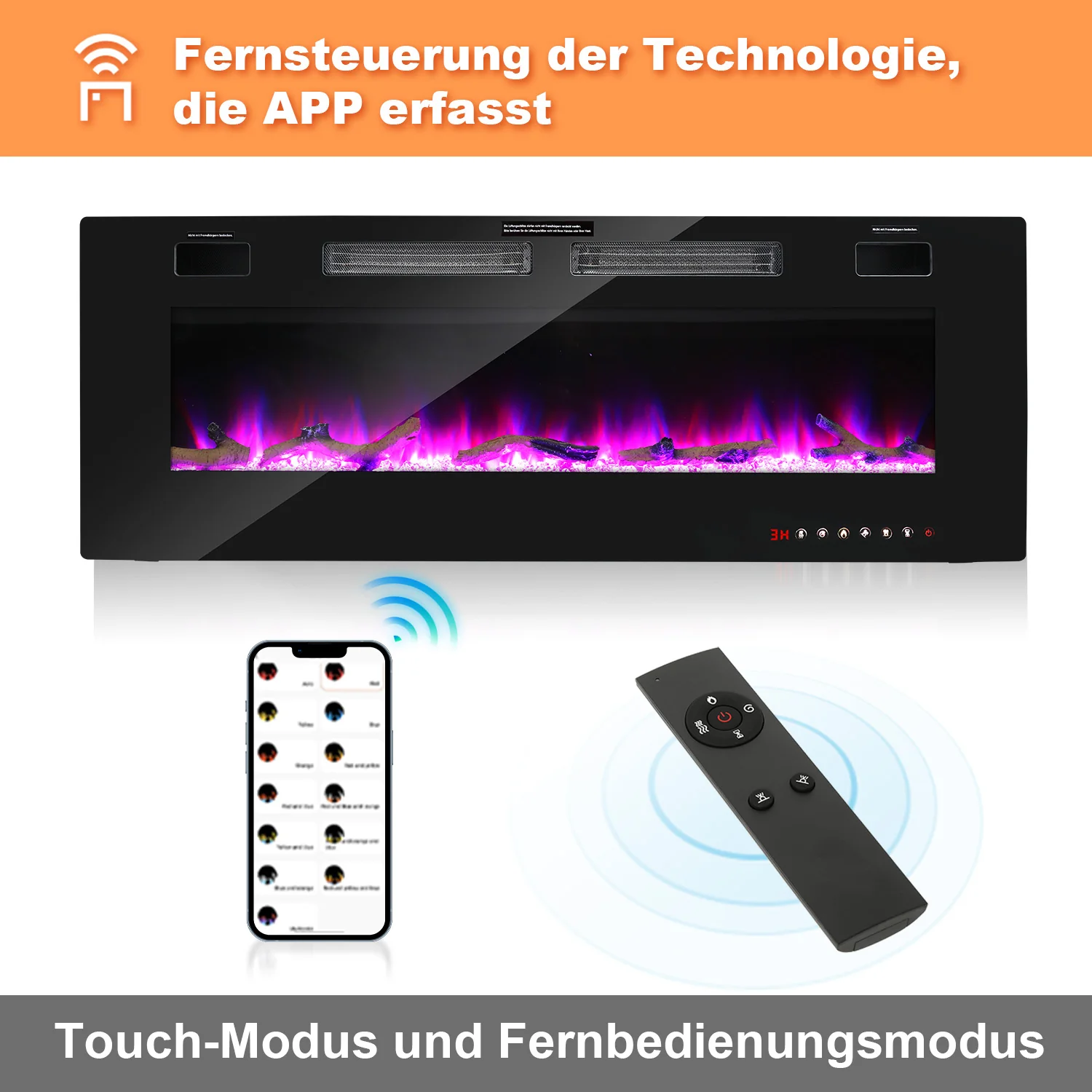【Einfache Steuerung】Maximale Behaglichkeit wird durch verschiedene Steuerungsmglichkeiten erreicht, darunter Berührung, Fernbedienung oder die Steuerung über eine App. Der Kamin verfügt über 12 verschiedene Flammengrundfarben und 12 Flammenfarbkombinationen, um 144 Farbvariationen nach Ihrem Geschmack zu erzeugen.