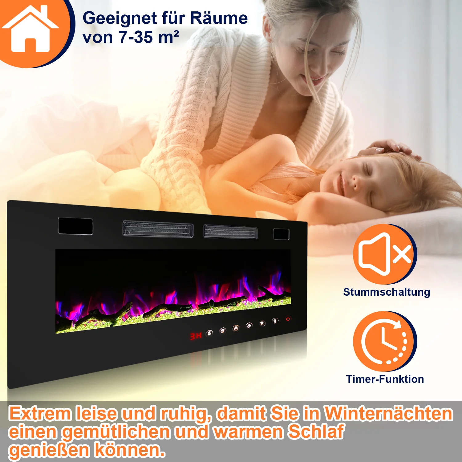 【Elektrischer Kamin mit 3D-Flammen】Der ultradünne Heizkamin mit einer Dicke von 9,80 cm erzeugt realistische Flammen und eine gemütliche Atmosphre, ohne Rauch, Ru oder Asche zu erzeugen. Die groe Auslassffnung sorgt für eine um 20-30% hhere Heizeffizienz im Vergleich zu anderen Heizmethoden.