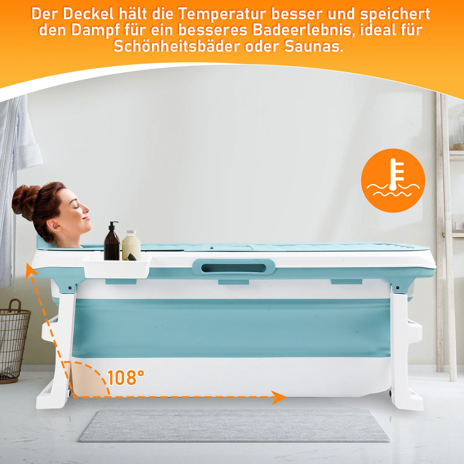 【Genieen Sie ein Bad】Die mobile badewanne ist überall einsetzbar, ob auf dem Balkon, im Garten oder im Bad. Die badewanne hat einen abnehmbaren Deckel, der die Abkühlung des Wassers verlangsamt, wenn sie geschlossen ist, und die Füe sind mit Massagerollen ausgestattet, um die Muskeln und den Krper noch mehr zu entspannen und Müdigkeit zu lindern.