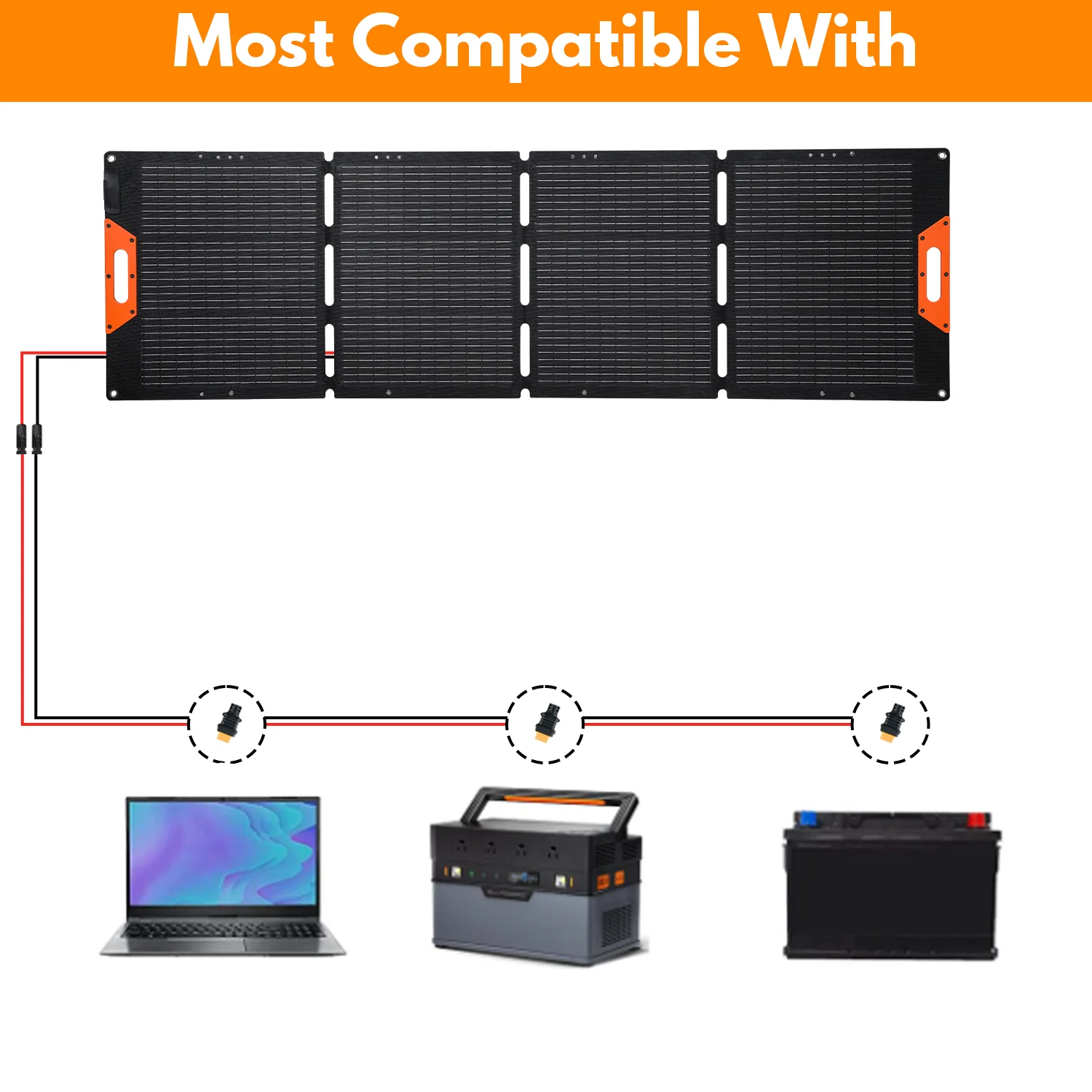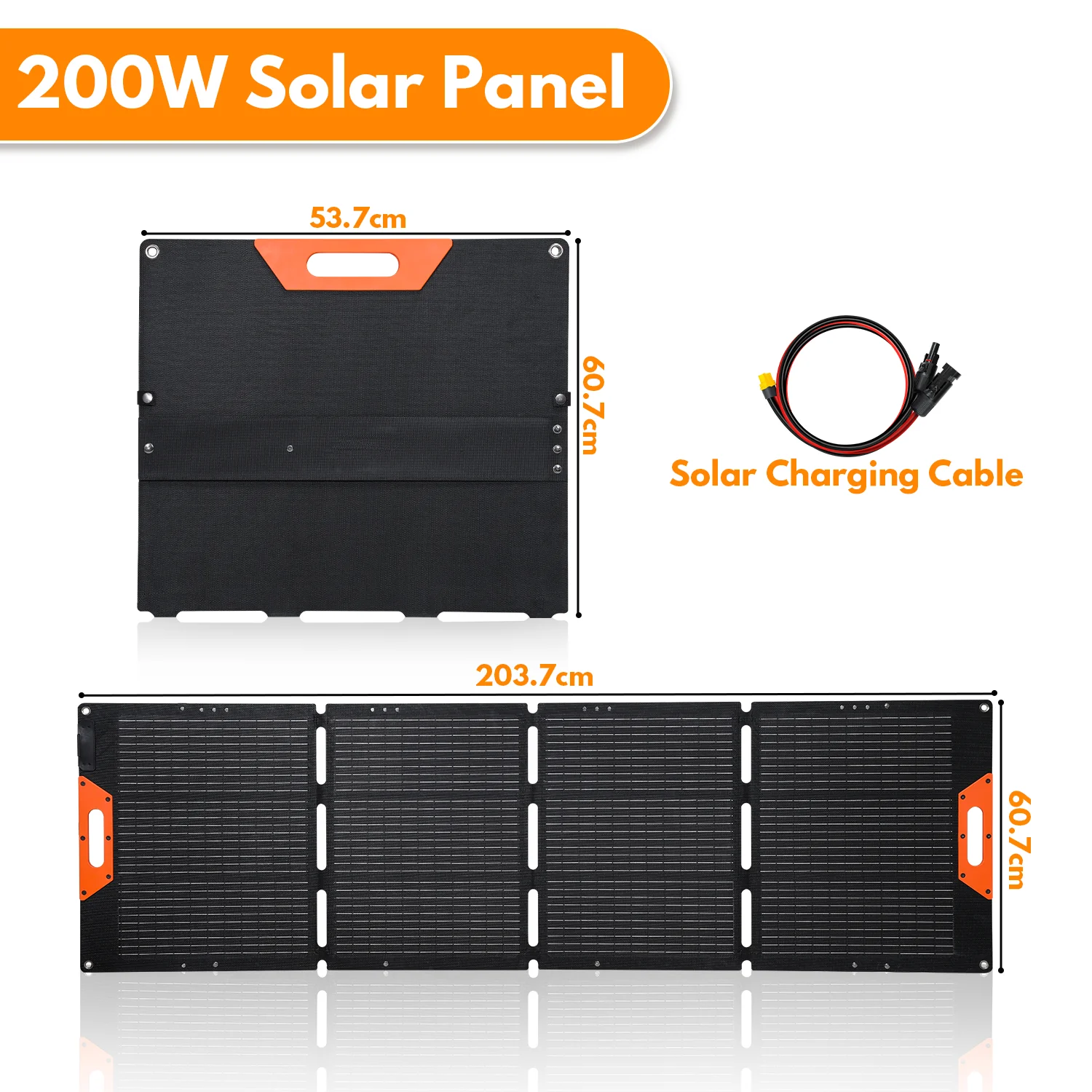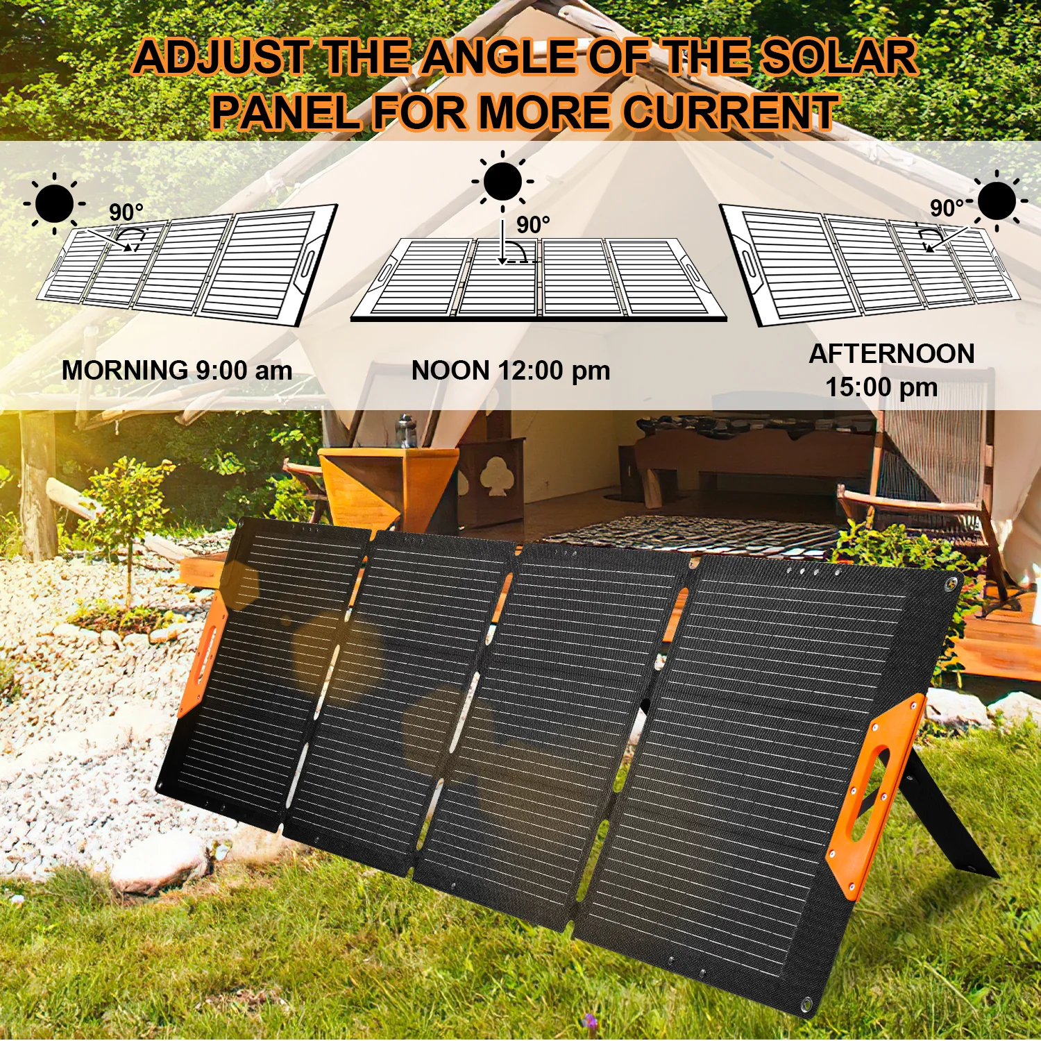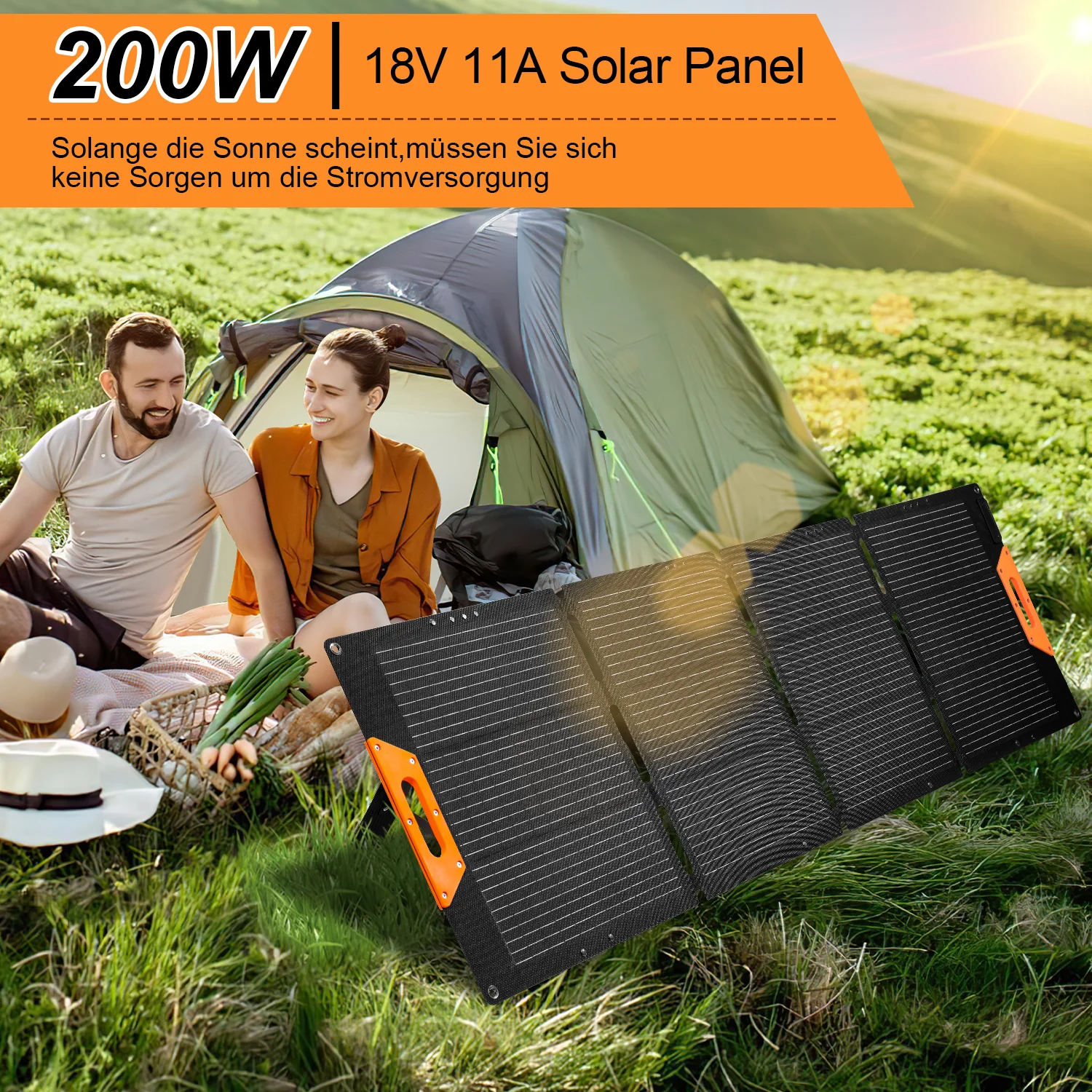 Hohe Umwandlungseffizienz: 200 W faltbares monokristallines Solarmodul, bestehend aus 4 monokristallinen Solarmodulen. Es hat eine hohe Umwandlungseffizienz und die Umwandlungsrate betrgt bis zu 24%.