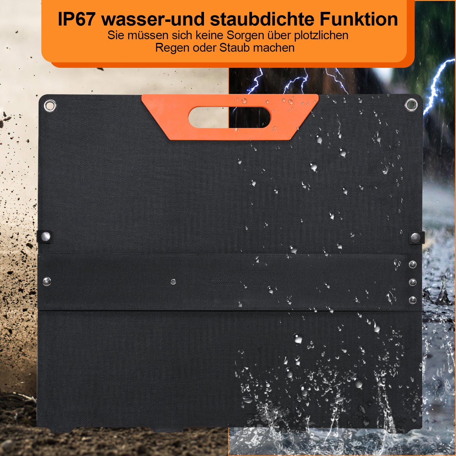 Langlebiges wasserdichtes Material: Das faltbare 200-W-Solarmodul hat eine haltbare ETFE-Beschichtung auf der Oberflche, die es haltbarer und kratzfester machen kann. Entspricht der Wasserdichtigkeitsklasse IP67 und kann Hochdruckwasserstrahlen aus allen Richtungen verhindern.