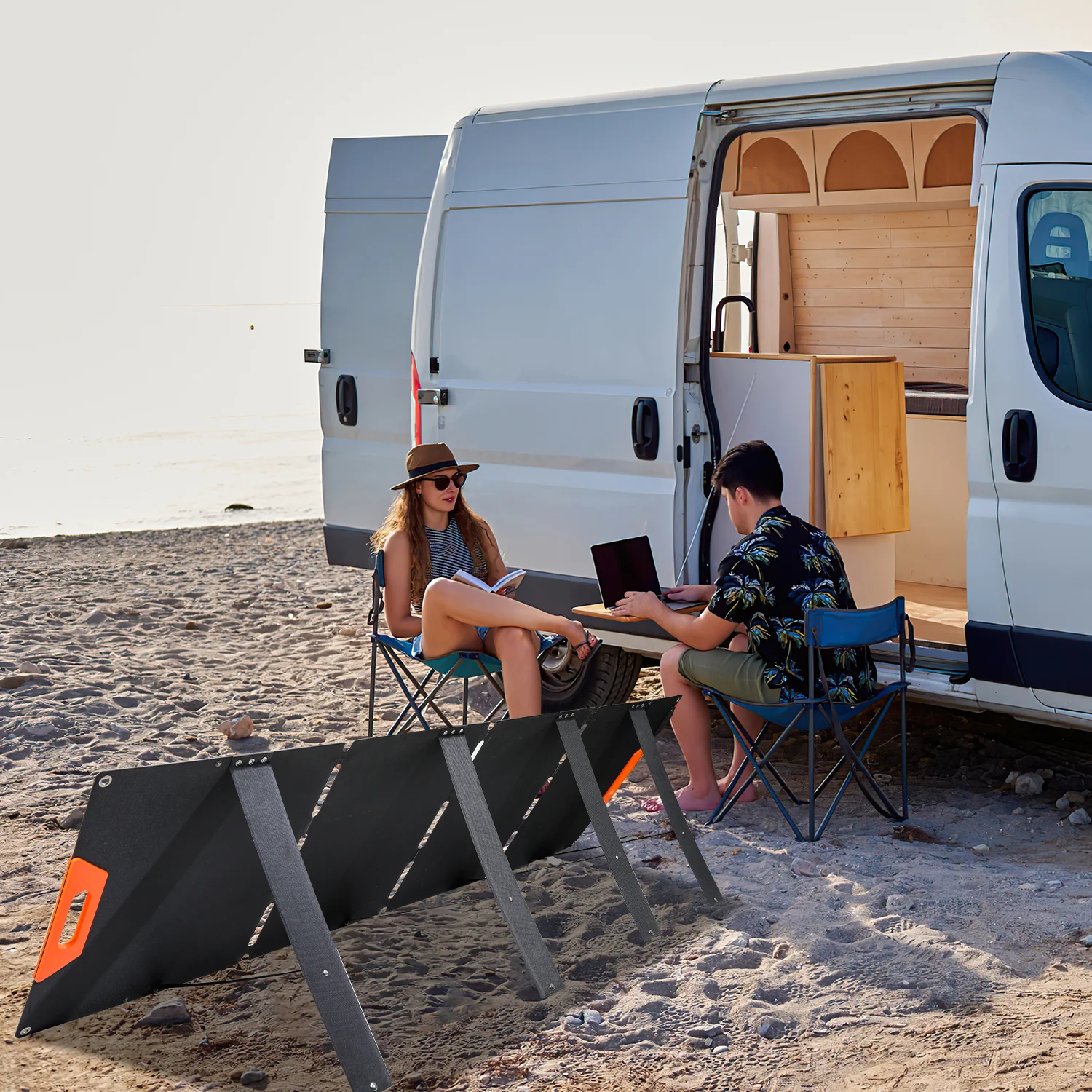 Faltbares und tragbares Design: leicht und tragbar (entfaltete Gre: 203,7x60,7x0,5cm / gefaltete Gre: 53.7x60.7x3.5cm; Nettogewicht: 8.55 kg). Im zusammengeklappten Zustand wird es mit einem Knopfknopf fixiert, um ein Lsen und Verstreuen zu verhindern. Die Solarmodule an beiden Enden haben Griffe, die bequem zum Tragen und Aufbewahren sind; geeignet für Camping, Wohnmobilreisen, Outdoor-Aktivitten und andere Gelegenheiten;