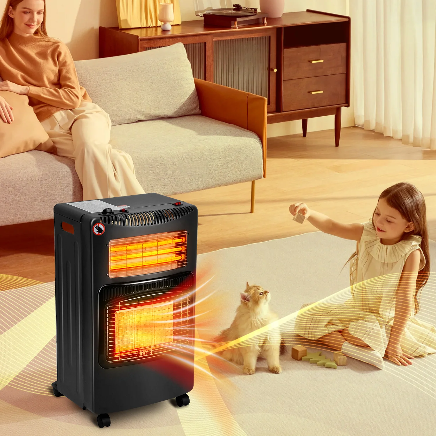 Starke Heizleistung: Wenn der Winter naht, ist unser Gasheizung für innenrume die ideale Wahl. Er bietet drei einstellbare Heizstufen (1300/2750/4200 W) und verteilt die Wrme gleichmig. Er kann gleichzeitig mit der elektrischen Heizfunktion verwendet werden und sorgt so für eine kontinuierliche und effiziente Wrmeabgabe. Ideal für Rume von 20 bis 60 Kubikmeter.