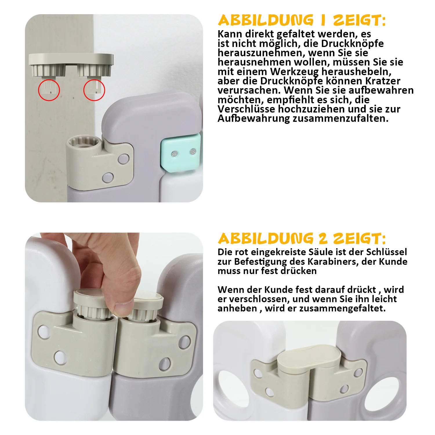 【Türverkleidung und Spielpanel】Türverkleidung verfügt über ein Sicherheitsschloss, starke Saugnpfe an der Unterseite und verstrkte Zaunplatten mit einer Sicherheitstürverriegelung, um die Sicherheit Ihres Kindes im Spielzaun zu gewhrleisten. Das Spielpanel enthlt rotierende Blle und einen Soundknopf für zustzlichen Spa.