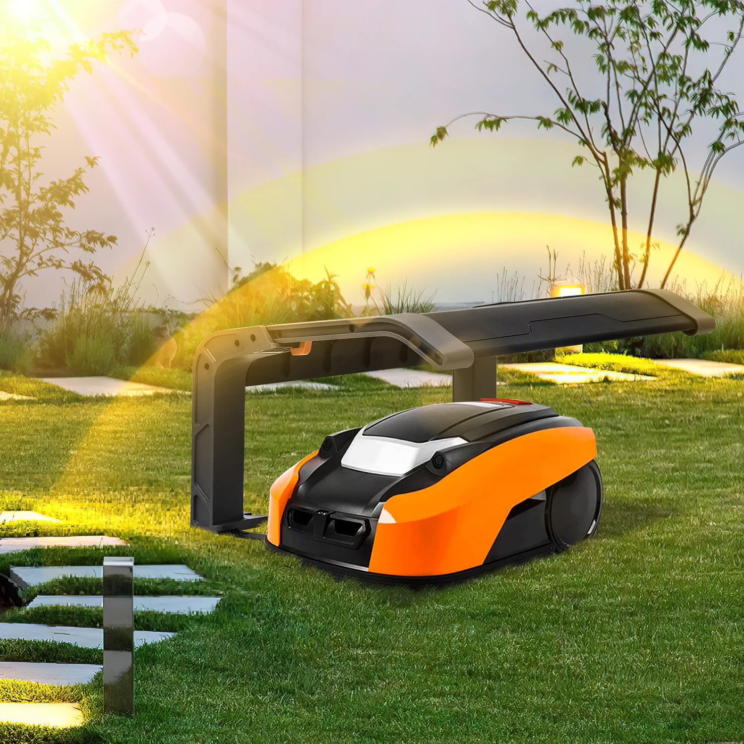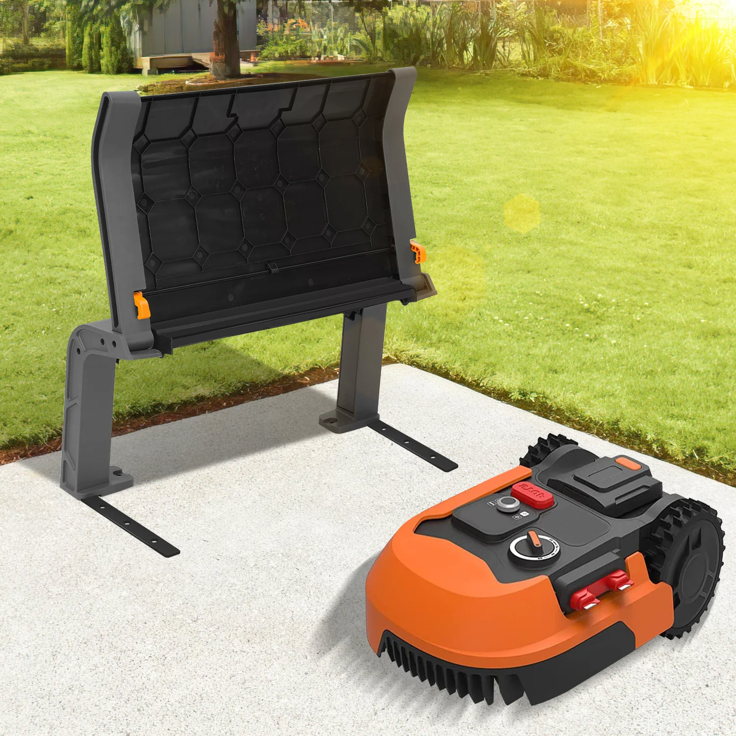 Stilvolles Design: Die schwarz-graue Roboter-Garage hat ein modernes und klares Design, das für die meisten Roboter-Rasenmher geeignet ist und in jedes Gartendesign integriert werden kann.