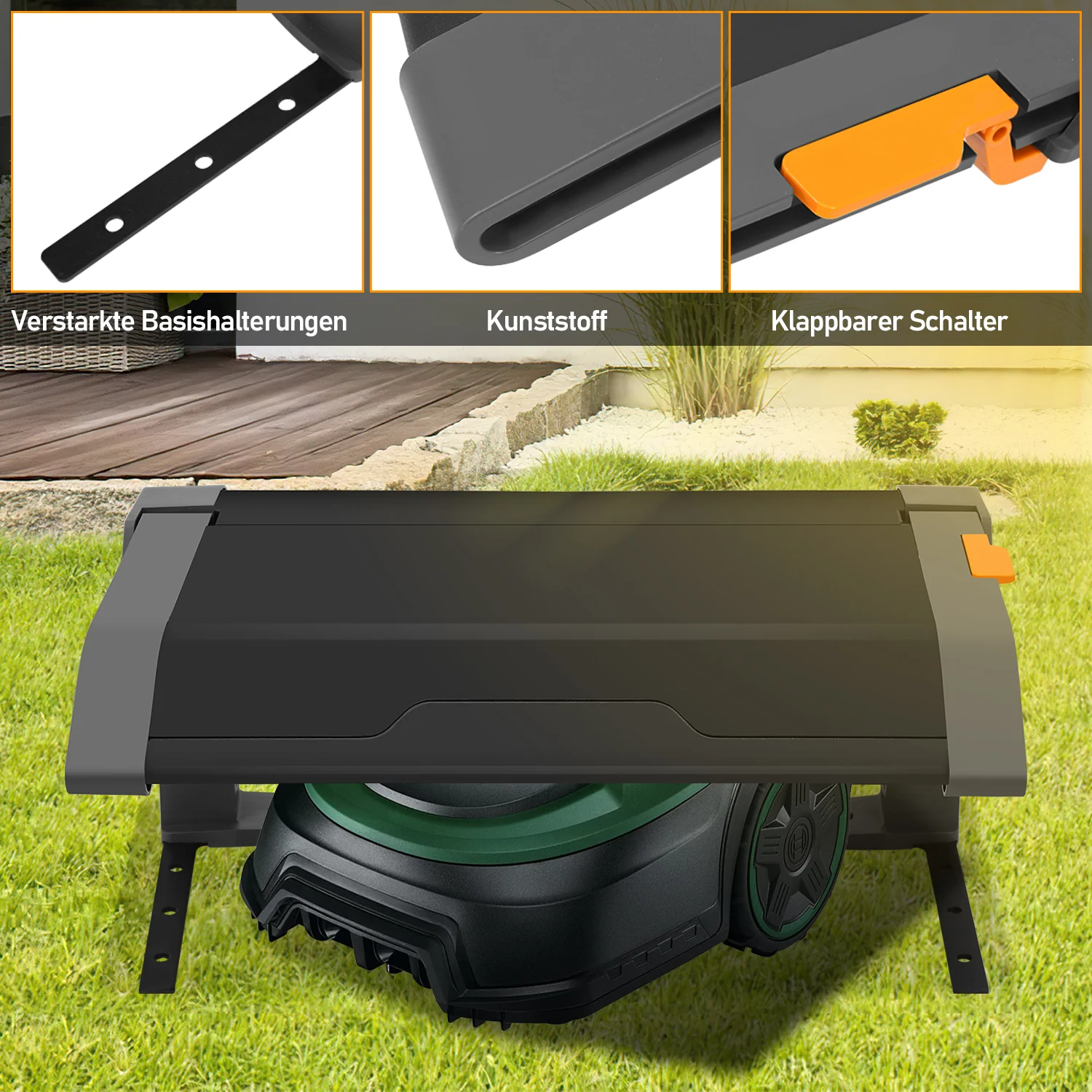 Allwetterschutz: Der PP-Kunststoff und das Anti-UV-Mittel sorgen dafür, dass das Dach des Mhroboters nicht so leicht beschdigt werden kann, um den Schutz vor ueren Einflüssen wie Sonnenlicht, Hagel, starkem Regen oder UV-Strahlung zu maximieren. Schützen Sie Ihren Mhroboter und die Ladestation vor Witterungseinflüssen.