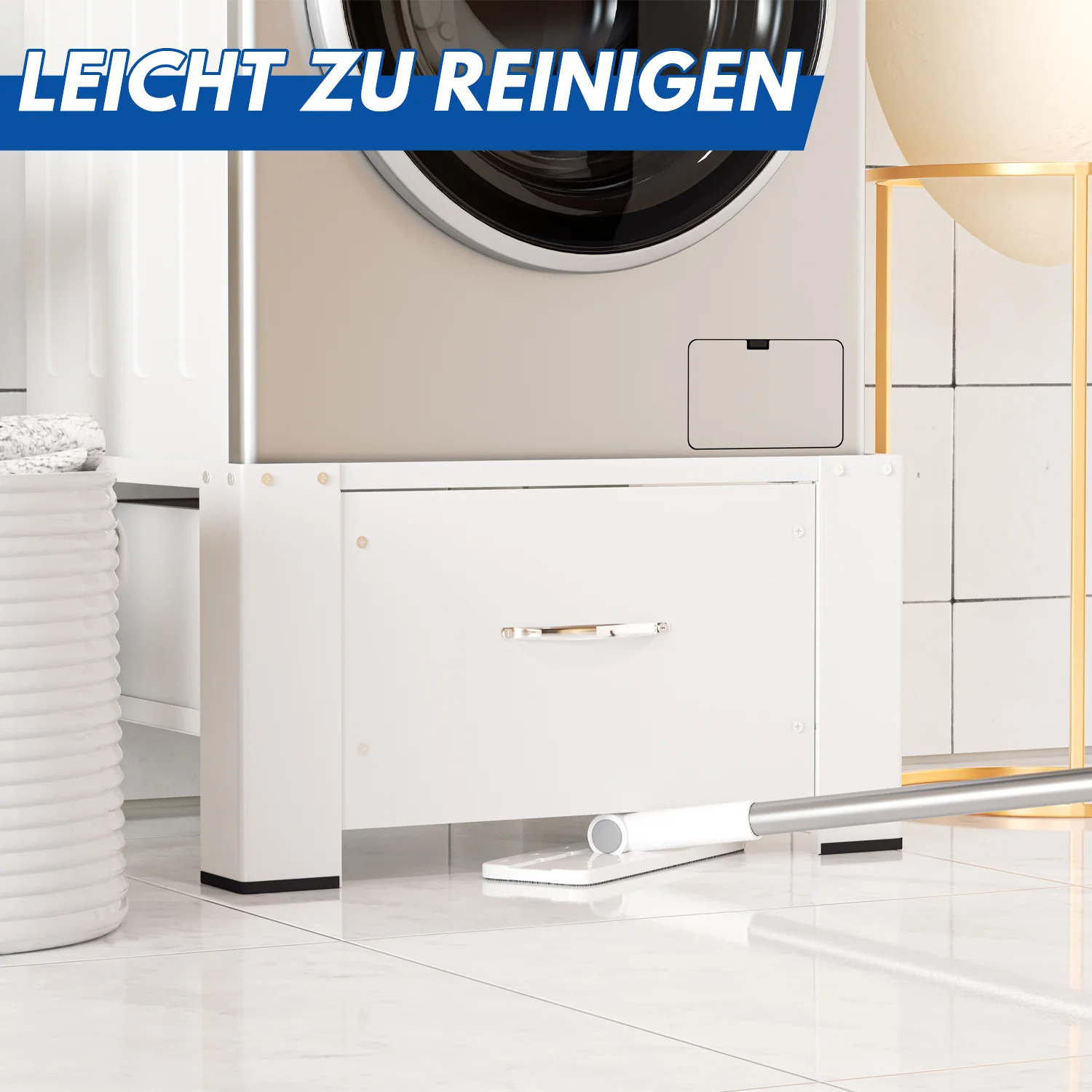 【Schublade zur Aufbewahrung】Unser Waschmaschinen Untergestell verfügt über ein greres Staufach für die übliche Aufbewahrung von Waschmittel, Wschebeuteln, Weichspüler und Wsche, um den Platz besser auszunutzen, und ist auerdem mit Edelstahlgriffen ausgestattet, die den Zugriff auf die Gegenstnde erleichtern.