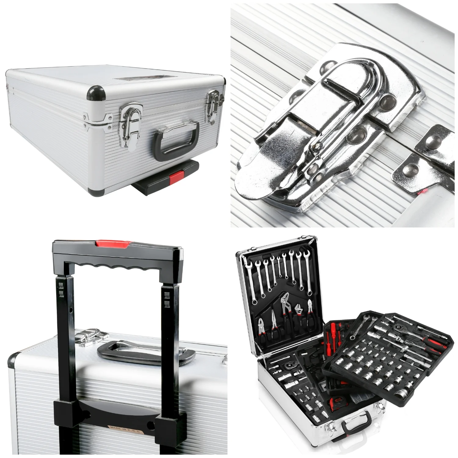 √Die Rollen an der Unterseite des Koffers und der praktische, ausziehbare Teleskopgriff machen Sie mit Ihrem Werkzeug mobil und schnell einsatzbereit.