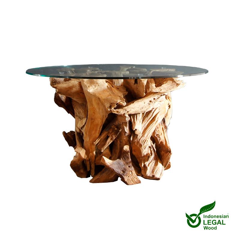 Handgearbeiteter Couchtisch IKAL aus Wurzelholz inkl. Glasscheibe 80 cm